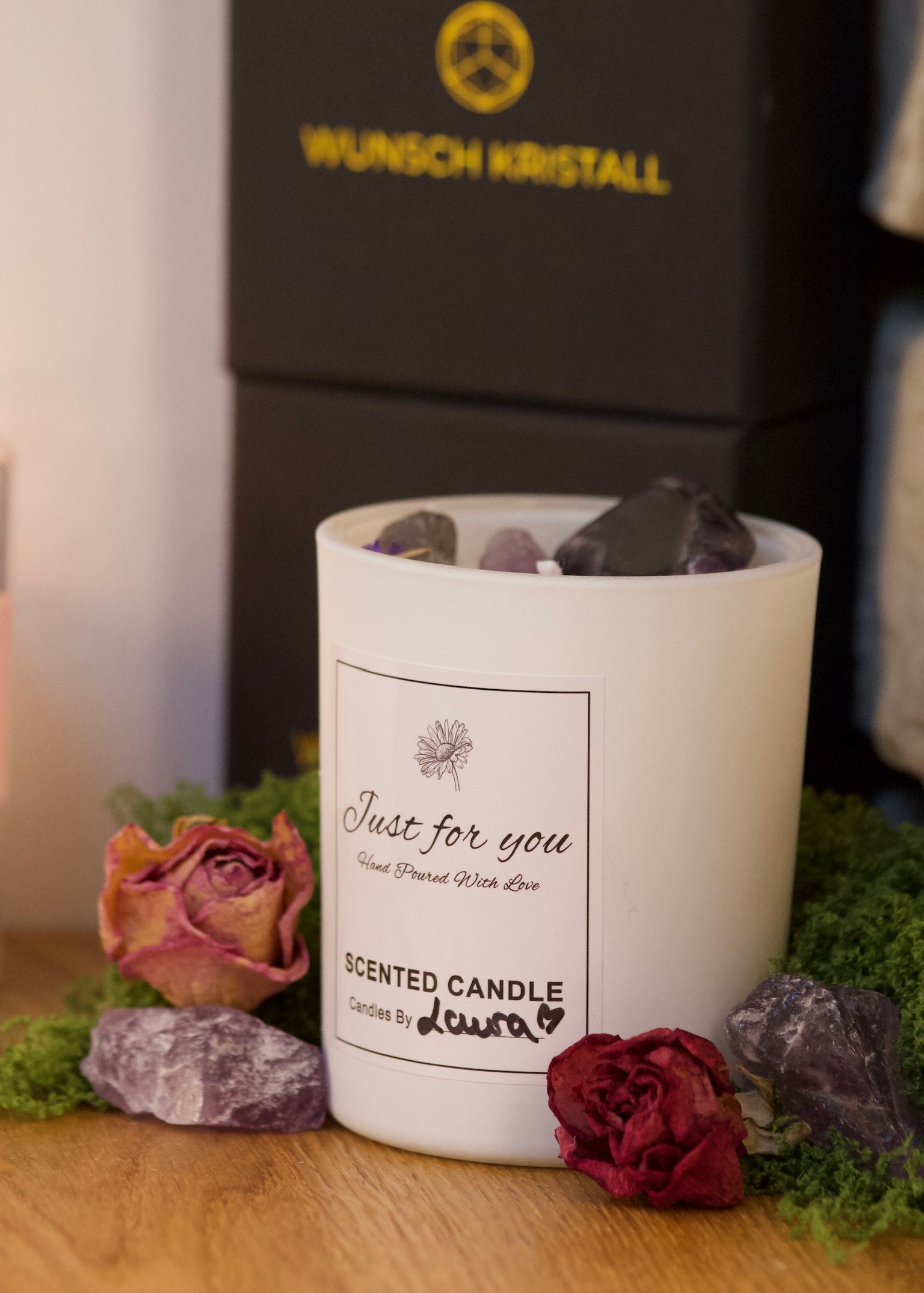 Die Kollektion Just for You steht für handgegossene Wunschkerzen voller Liebe, Kristallenergie & Intention.