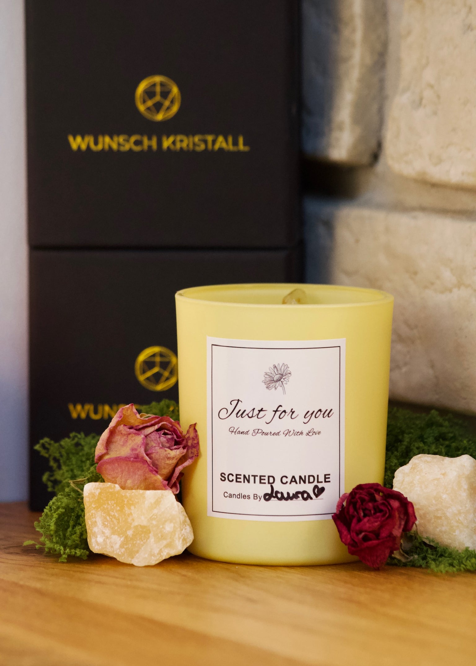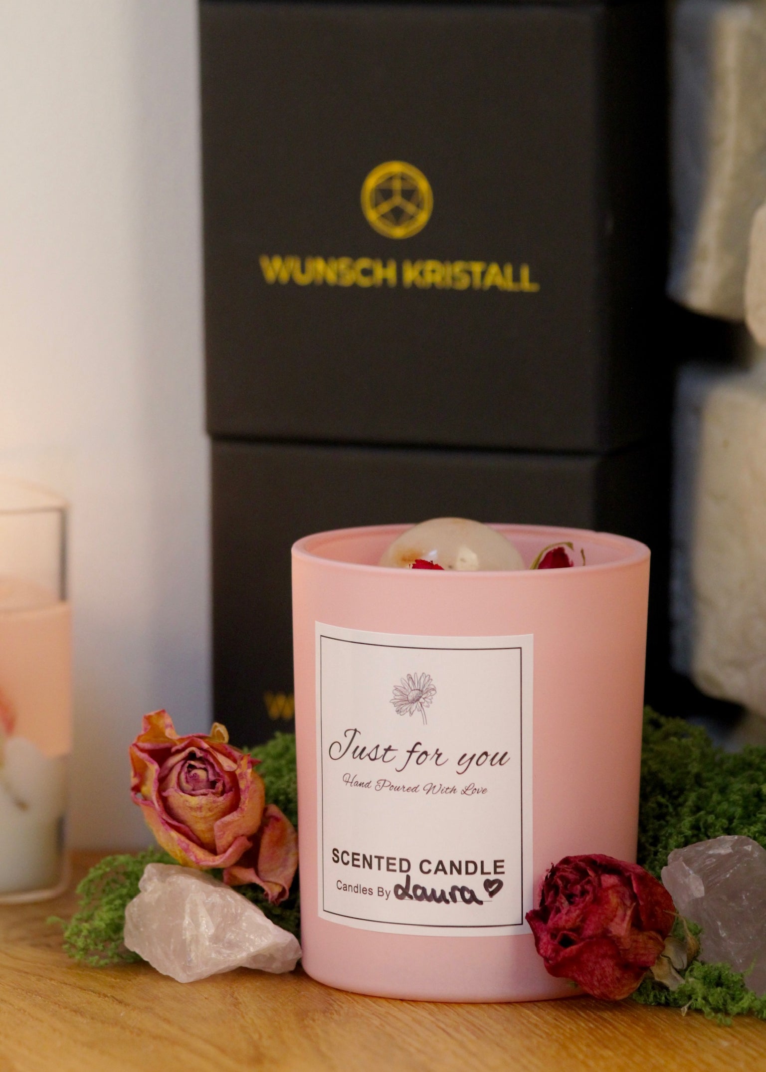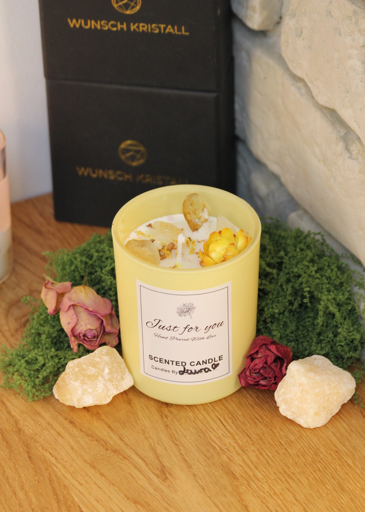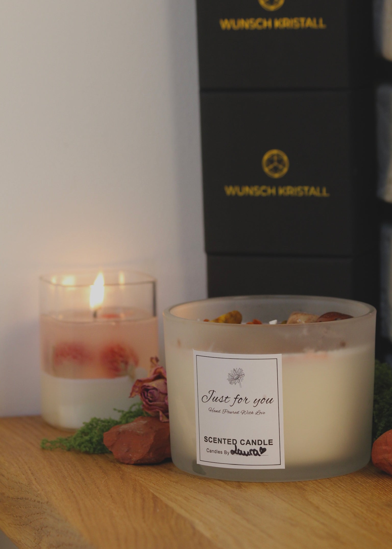 Die Kollektion Just for You steht für handgegossene Wunschkerzen voller Liebe, Kristallenergie & Intention.