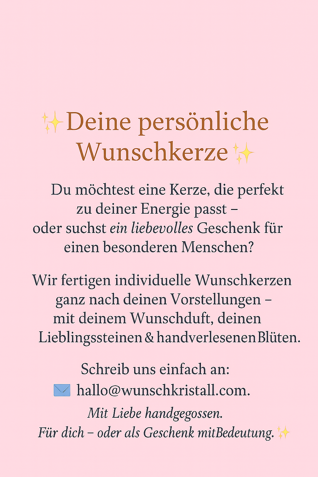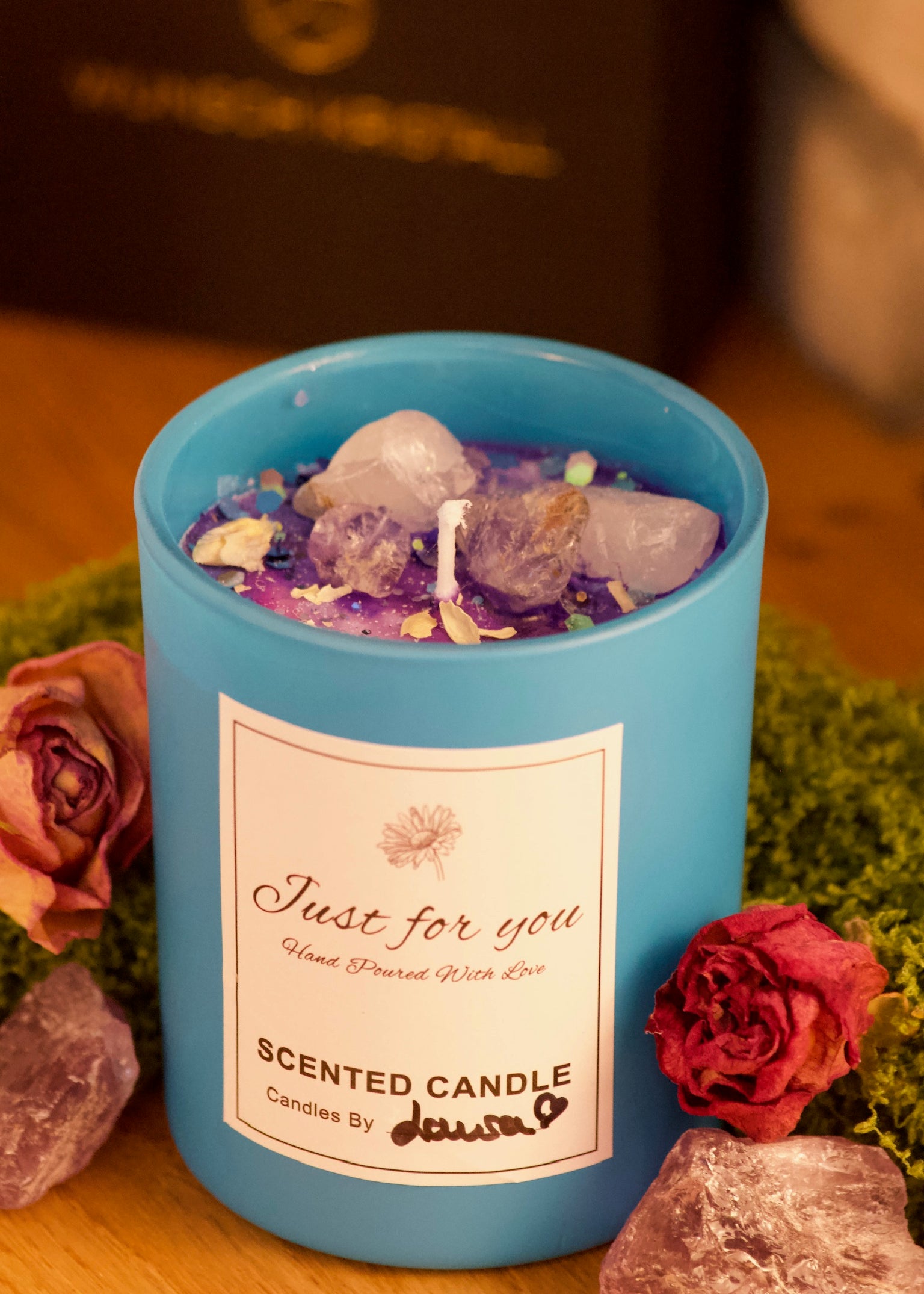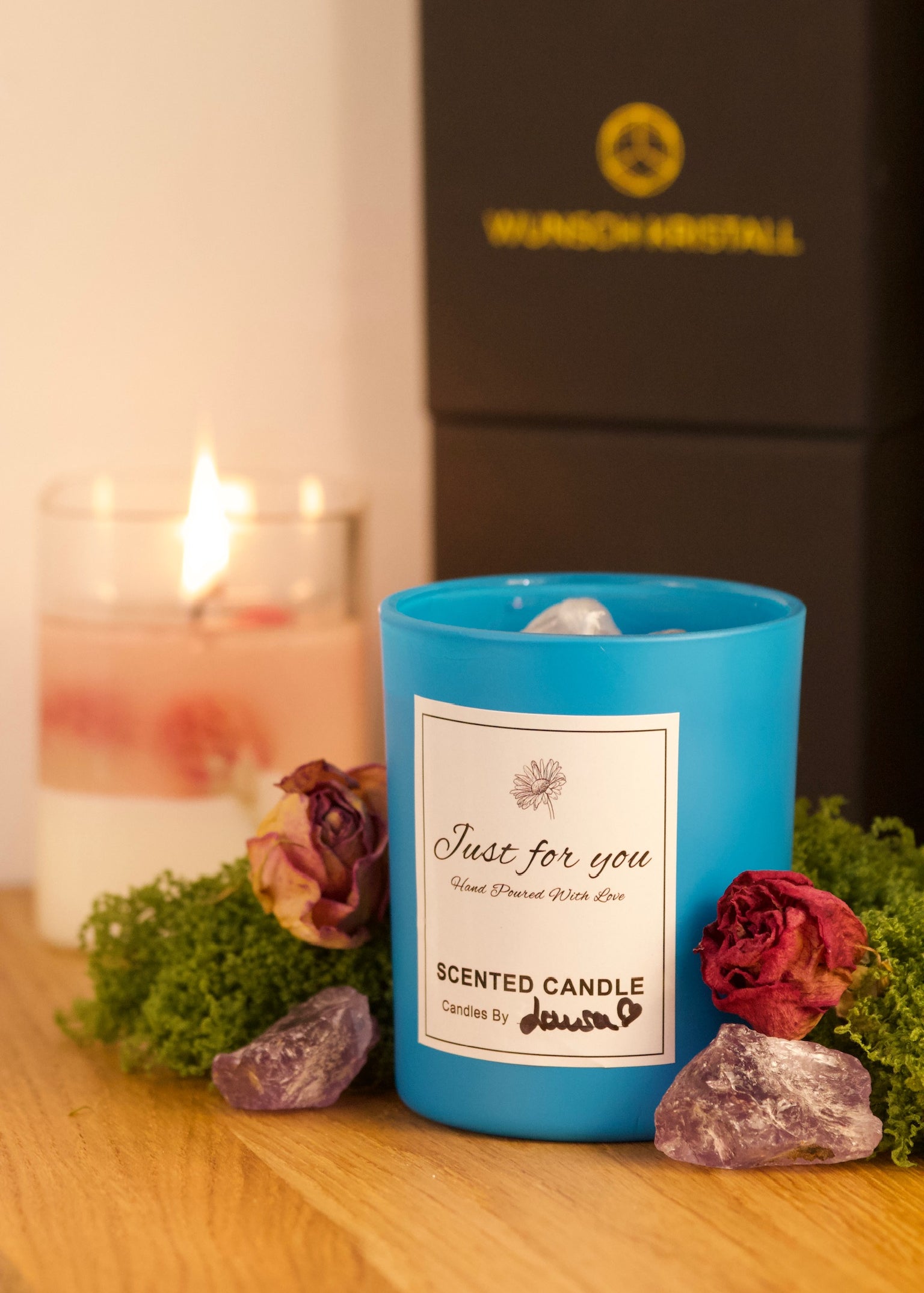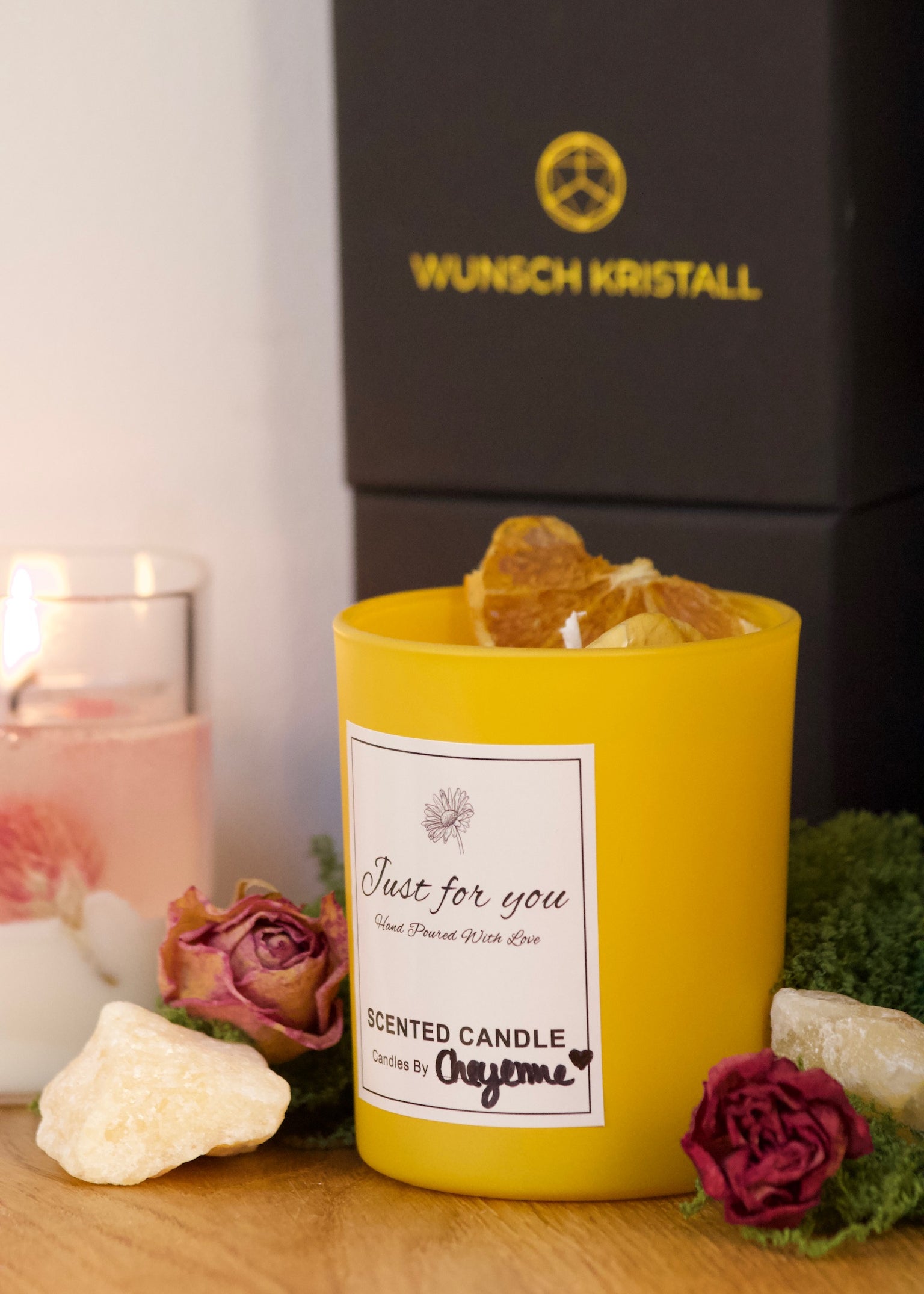 Die Kollektion Just for You steht für handgegossene Wunschkerzen voller Liebe, Kristallenergie & Intention.