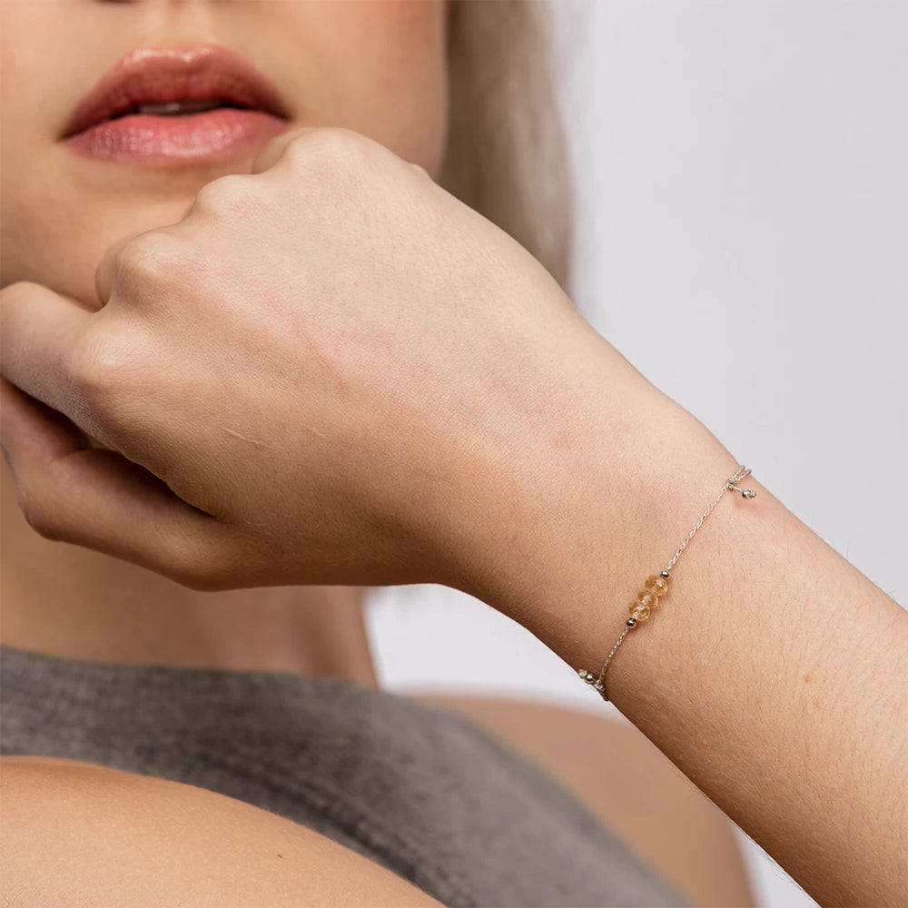 Las creencias, la personalidad, la confianza en sí mismo, la voluntad, el poder y el control son los temas del Chakra del Plexo Solar. Esta pulsera con el cristal de citrino amarillo está diseñada para apoyarte en esto.