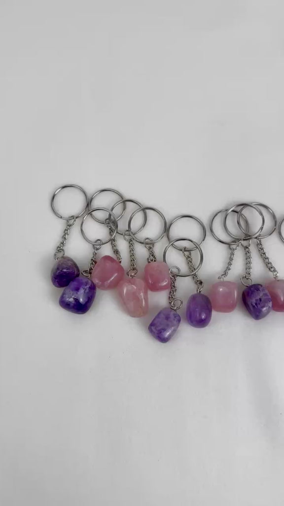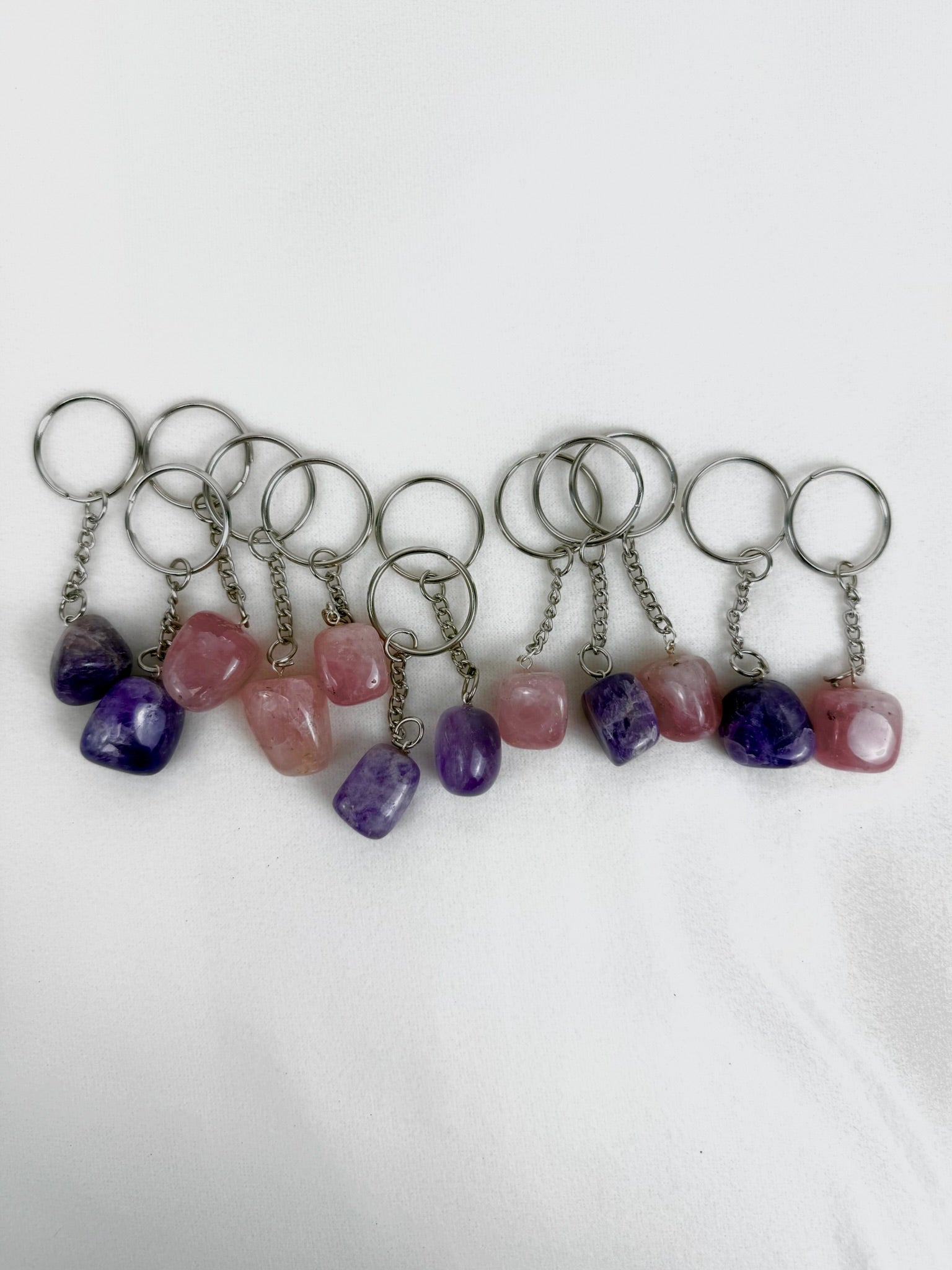 Kristall-Schlüsselanhänger – Rosenquarz | Amethyst