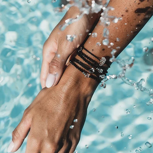 Unser Schmuck aus Silber oder Edelstahl ist zu 100% wasserfest. Du kannst ihn immer tragen, egal ob beim Sport oder unter der Dusche!Wir verwenden nur echte Kristalle, oft in Naturform - somit ist jedes Schmuckstück einzigartig wie Du.