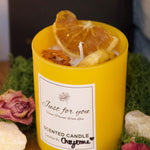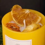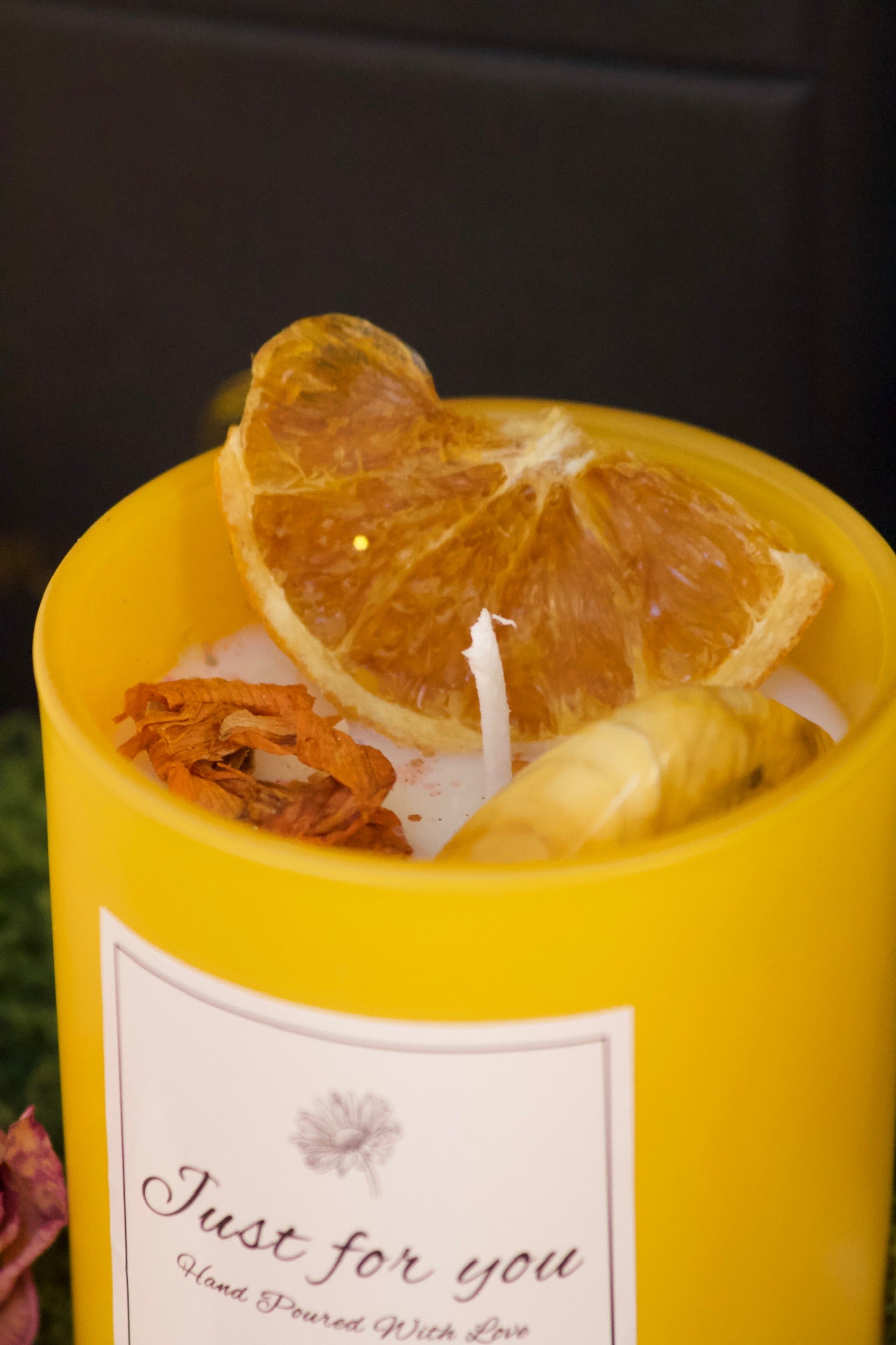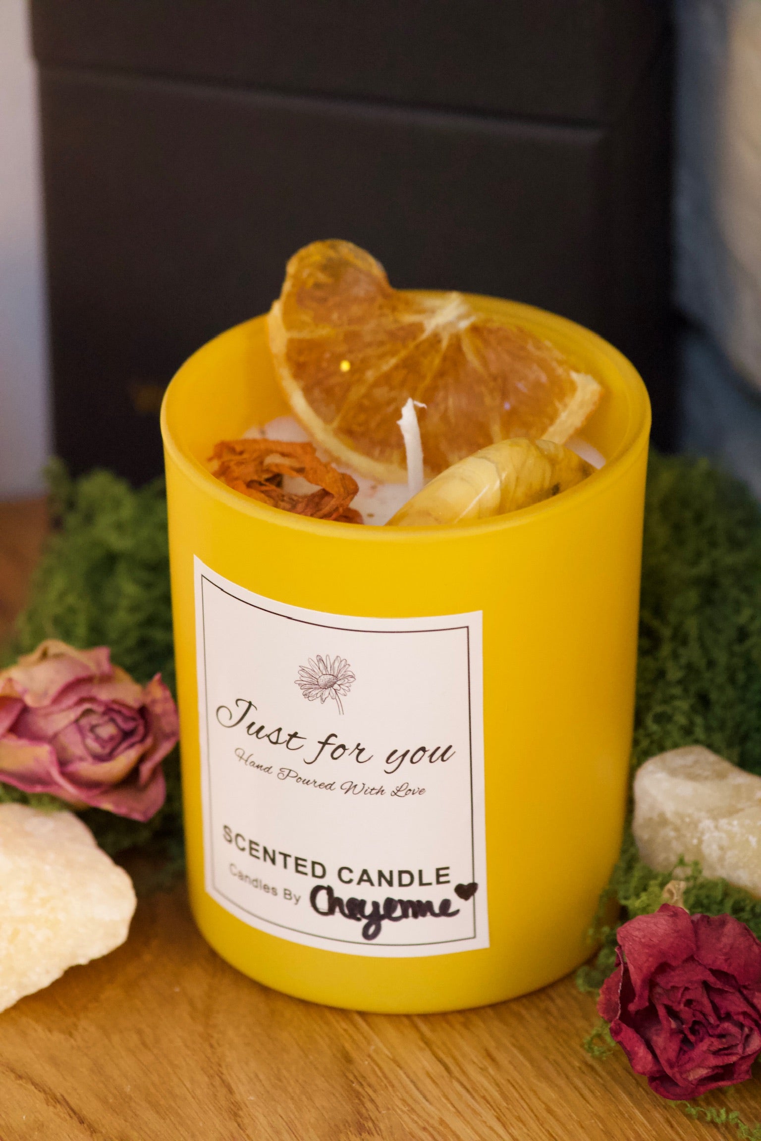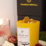 Wunschkerze „Lebensenergie & Freude“ – Handgegossen mit gelbem Jaspis, Lilie & Orange