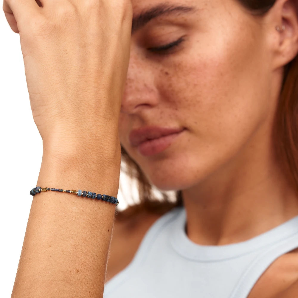 Mantra Bliss Deluxe – Stilvolles Armband am Handgelenk eines Models, ideal für den Alltag und besondere Anlässe.