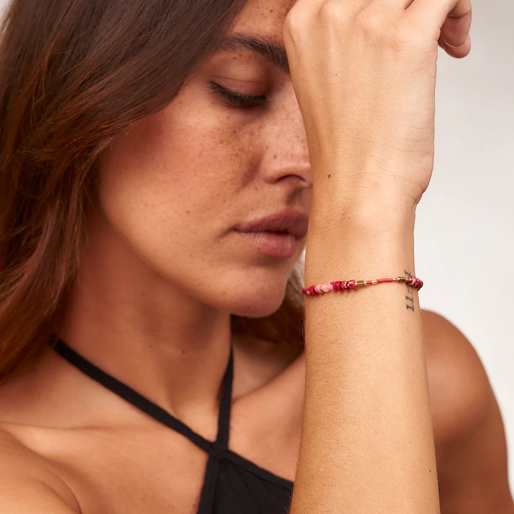 Ein echtes Highlight! "Dieses Armband ist mein absoluter Favorit. Die Farben der Kristalle sind einfach zauberhaft und passen zu allem. Ich habe das Gefühl, dass die Energien der Steine meine innere Ruhe unterstützen und mir helfen, mich auf meine Ziele zu konzentrieren. Ich kann es jedem nur empfehlen!"
