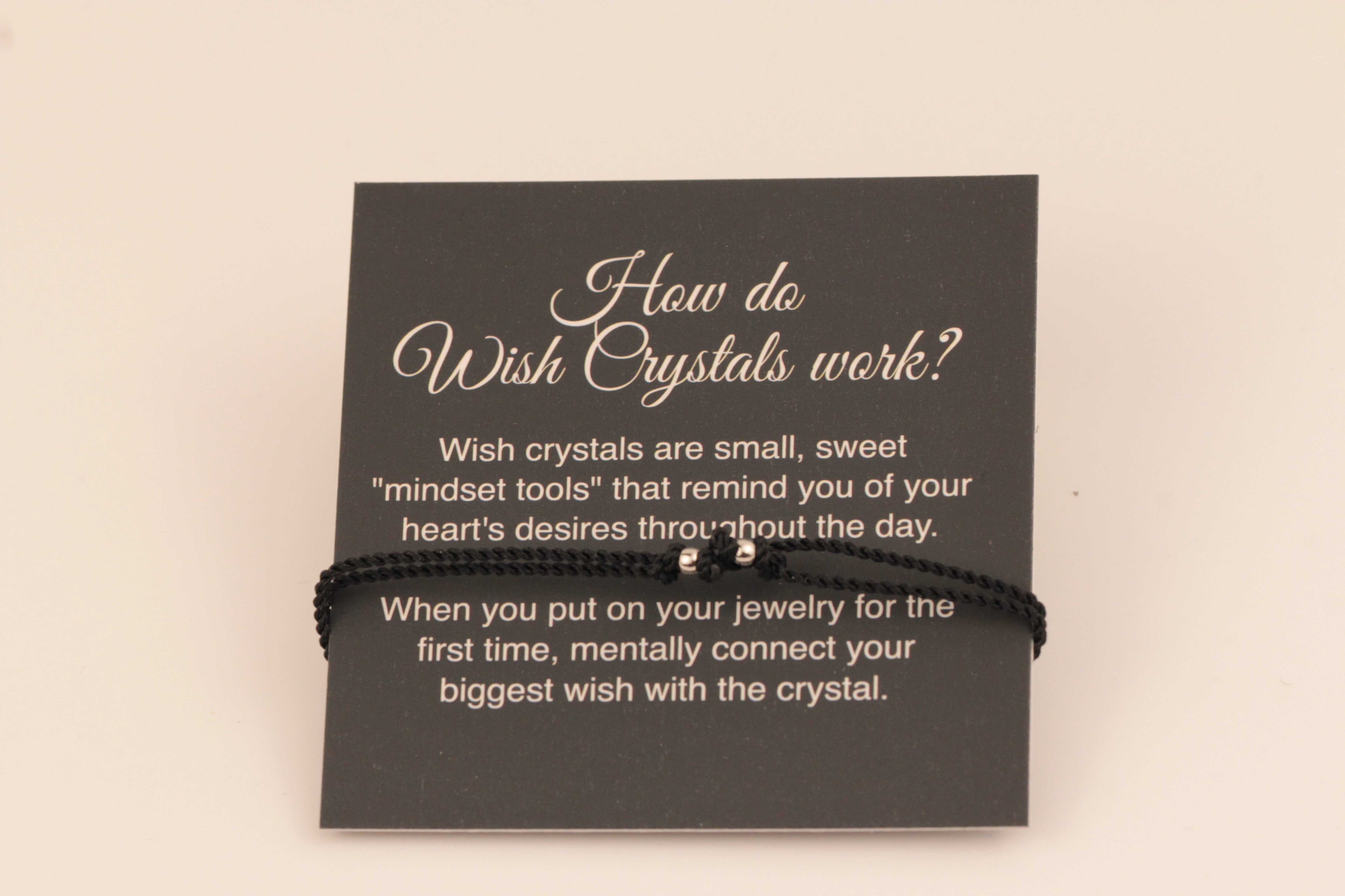 Die edle Version unseres Wunsch Kristall Armbandes. Das Band ist etwas dicker, der Verschiebeknoten mit Silberperlen verschönert.